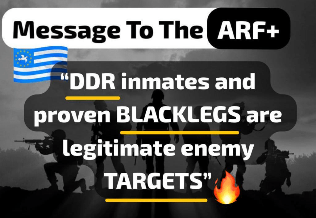 To all black legs, whether you call yourself ‘elites’ or unionists, your time is up. You are no longer to approach or threaten any of our ARF. Neither are we tolerating any “advice” to go to DDR.