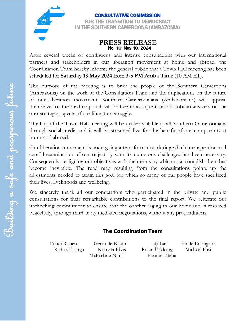 The next opportunity to keep communication lines open will be the Ambazonian Collaboration Team’s Townhall on 18/5/24.